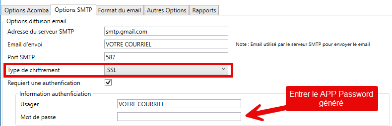 4 B - Configuration SMTP pour Gmail